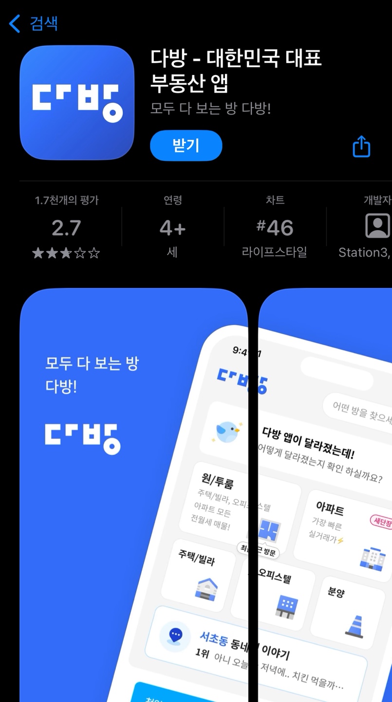 These apps are super popular for studio apartments and officetels. With Zigbang(직방), Dabang(다방), you can see real-time listings, price ranges, and actual photos of rooms.